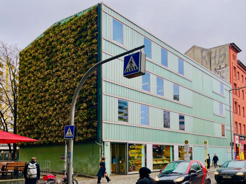 Die erste hängende grüne Fassade an einem bezirkseigenen Gebäude in Friedrichshain-Kreuzberg wurde am 8. Dezember an der Mittelpunktbibliothek installiert. Lest mehr in der Rubrik Aktuelle Hinweise.