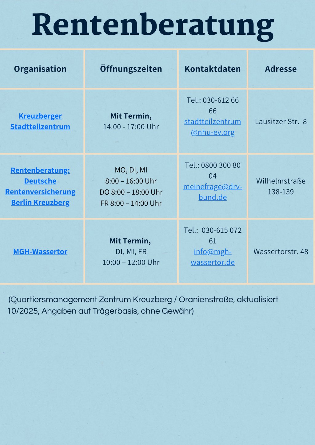 Sie sind auf der Suche nach einer allgemeinen Sozialberatung, oder haben Sie konkrete Fragen zum Mietvertrag bzw. Mieterhöhungen, Probleme mit "Hartz IV"/"Alg II"/"Bürgergeld" etc.?